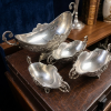Evinize klasik bir hava katacak veya özel davetlerinizde sofralarınızı süsleyecek, antika formunda tasarlanmış 4 parçadan oluşan gümüş kaplama sunum seti satılıktır.
