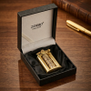 Satılık orijinal Zorro marka, nostaljik tasarımlı pirinç renkli mekanik çakmak. Hem günlük kullanımda tarzınızı yansıtacak şık bir aksesuar hem de koleksiyonerler için vitrinlik bir üründür. Orta silindirindeki özel kabartma işçiliği ve klasik ateşleme mekanizmasıyla oldukça dikkat çekicidir.